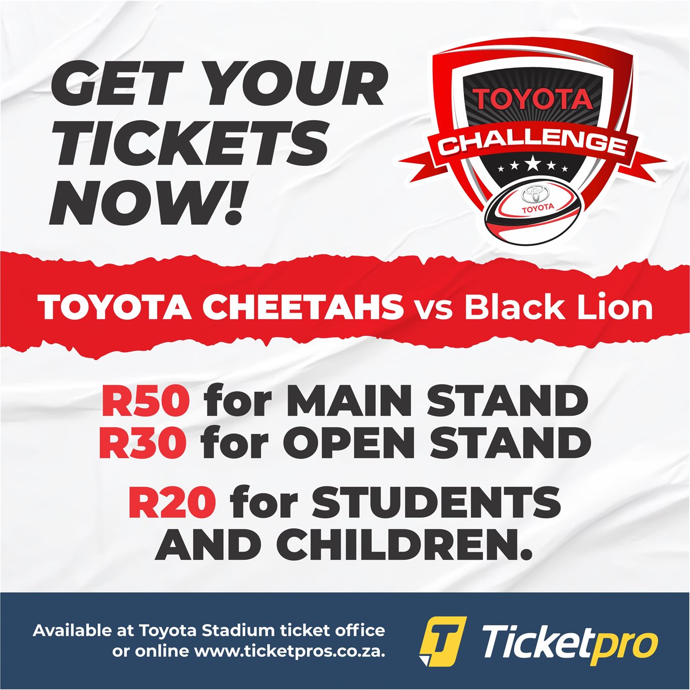 Purchase your match day ticket at Ticketpro R50 - Open Stand R30 - Main Stand R20 - Students & Kids |