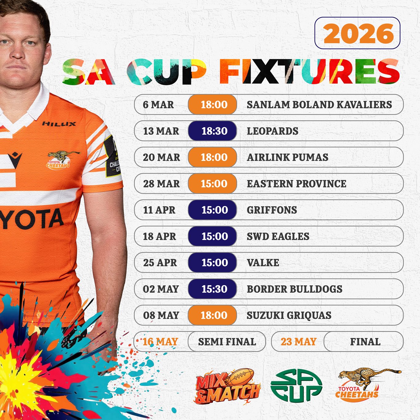 Includes a home Currie Cup semi-final.